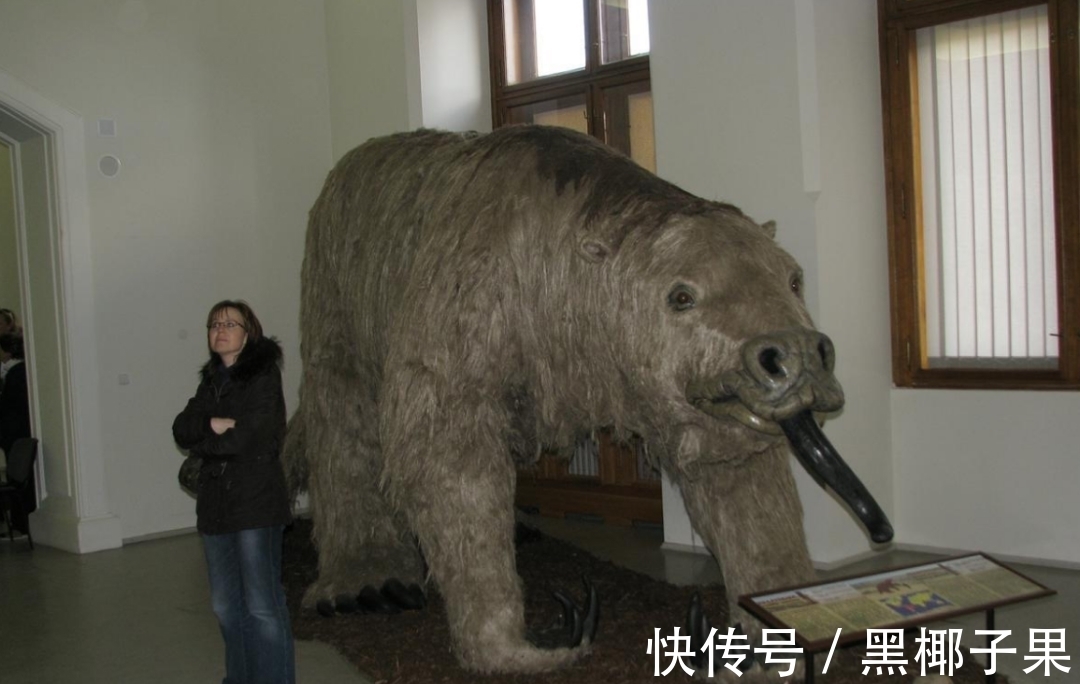 大地獭是在冰河时代全美洲第三大的陆生兽类,头部较小,下颌前部没有牙齿,还有一根非常长的舌头,而它们的前肢上生长着3个内侧趾,每一个上都有着40厘米长的坚硬爪子,并且还生活在洞穴之中,当大地獭直立起来,甚至最高的都能有6米。